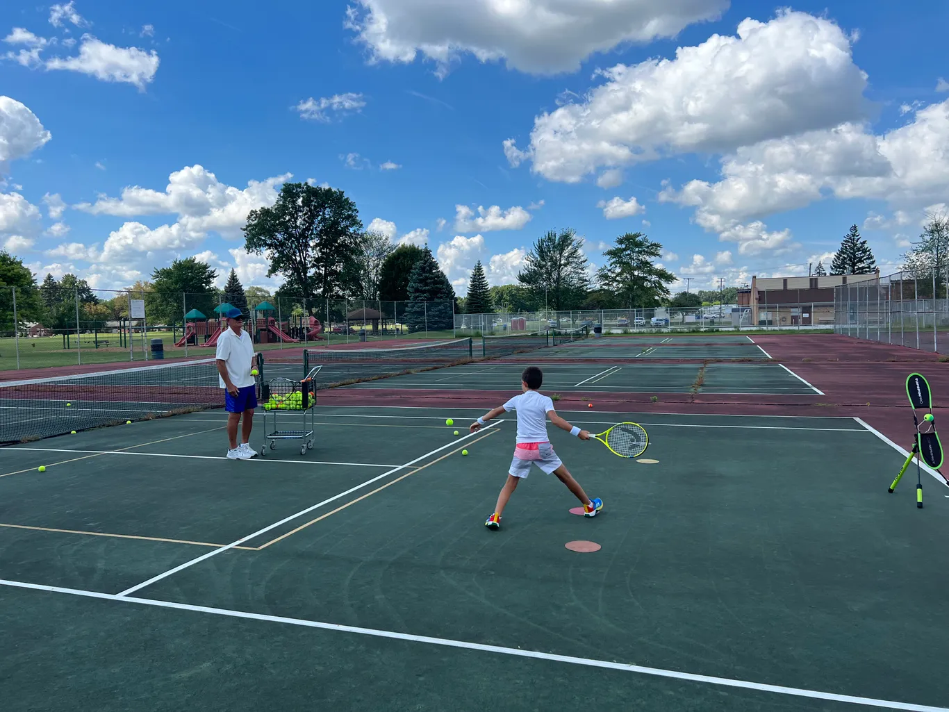 I hadn’t played tennis since high school and was looking to get back into playing. Coach chuck was awesome! After only two lessons I feel like I’ve gotten the drills, repetition, help with technique to feel like I’m getting back into it! It’s been incredibly helpful and I will definitely be continuing my lessons. The biggest help is the tons of reputation with immediate and really valuable help with technique! Can’t recommend lessons with him highly enough. Was a great workout too!